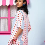 Maya Shirt Vis Blue Stripes Red Hearts Πουκάμισο Petit Boutik