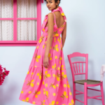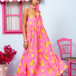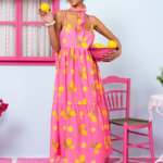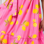 Athena Dress Pink Lemons Stripes