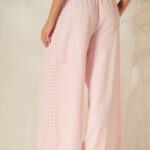 Ανάλαφρο και playful παντελόνι σε φαρδιά γραμμή με ριγέ μοτίβο που ξεχωρίζει. Η ελαστική μέση προσφέρει άνετη εφαρμογή, ενώ η διακοσμητική τρέσα με καρδιές στο πλάι προσθέτει μια ιδιαίτερη, fashion-forward πινελιά. Ιδανικό για χαλαρά αλλά στιλάτα looks.