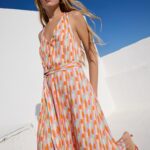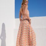 Αέρινο maxi φόρεμα σεμιζιέ από απαλή βισκόζη που αγκαλιάζει το σώμα με φυσική ροή. Το ιδιαίτερο μοτίβο σε ζωντανές αποχρώσεις δίνει σύγχρονο χαρακτήρα, ενώ η ανοιχτή πλάτη και η ζώνη στη μέση αναδεικνύουν διακριτικά τη σιλουέτα. Ένα statement κομμάτι που συνδυάζει κομψότητα και καλοκαιρινή ανεμελιά.