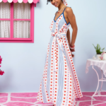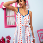 Με υπέροχο μοτίβο στο ύφασμα, ρυθμιζόμενες τιράντες, τσέπες και υφασμάτινη ζώνη, συνδυάζει κομψότητα και πρακτικότητα σε ένα μοναδικό σχέδιο.