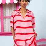 Maya Shirt Vis Pink Red Triple Stripes Πουκάμισο Petit Boutik